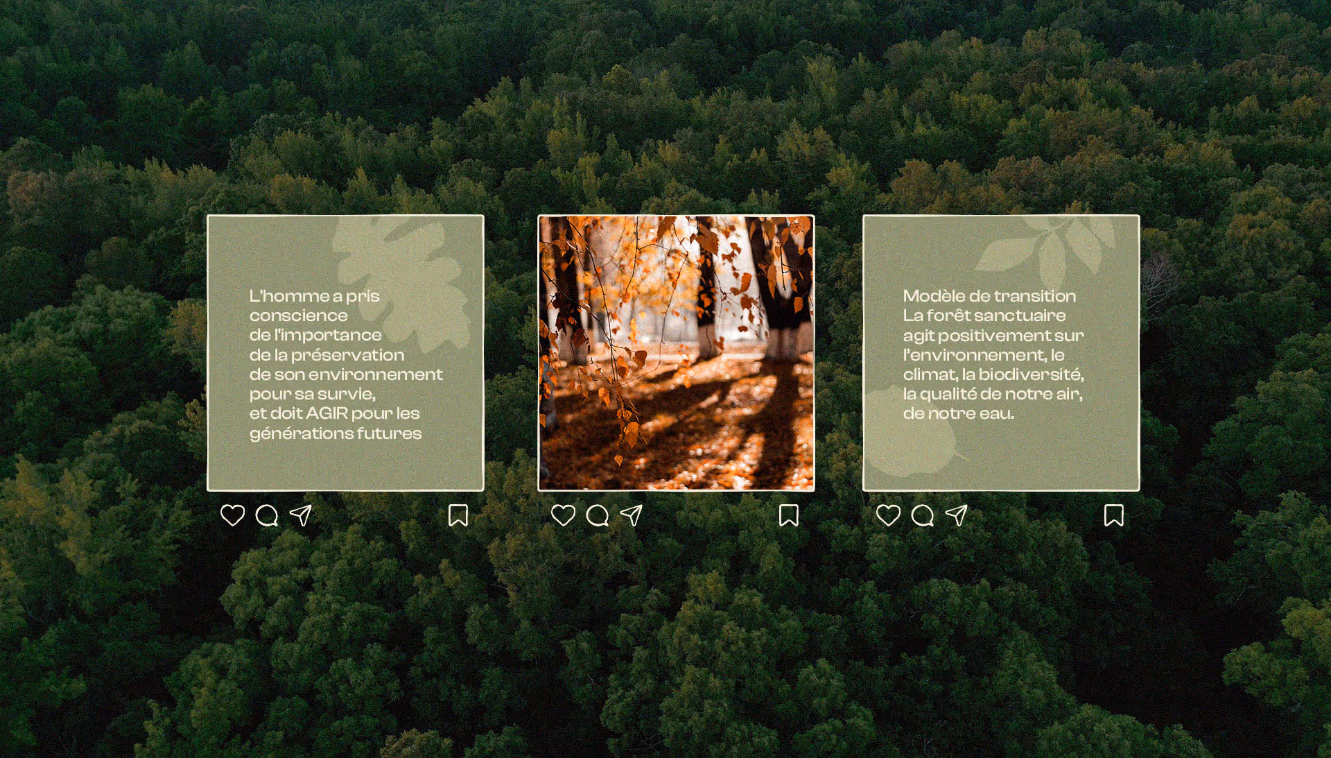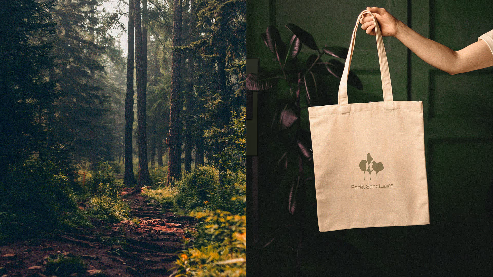 Nous avons accompagné l'association Au Delà des Racines dans la création de la nouvelle identité visuelle de Forêt Sanctuaire. L'enjeu étant de créer un univers à la fois évocateur de la connexion à la nature du projet tout en respectant l'aspect solennel des services proposés.
